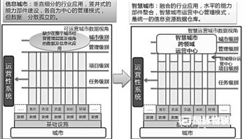 隨著城市人口的聚集,產(chǎn)業(yè)的升級(jí)發(fā)展,人們對(duì)生活質(zhì)量期望的提升,城市各行業(yè)領(lǐng)域都迫切地需求借助信息化手段提升社會(huì)管理效率和公共服務(wù)的能力。信息 城市階段,城市各行業(yè)領(lǐng)域建立各自的信息化系統(tǒng),各行業(yè)信息化系統(tǒng)彼此獨(dú)立,信息資源沒(méi)有進(jìn)行有效的匯聚整合和共享。智慧城市階段就是通過(guò)增加跨行業(yè)領(lǐng)域 的運(yùn)營(yíng)中心,匯集整個(gè)城市運(yùn)營(yíng)層面的數(shù)據(jù),將原有的行業(yè)信息化延展為社會(huì)信息化,并將社會(huì)管理納入統(tǒng)一系統(tǒng),為分析各行業(yè)領(lǐng)域相關(guān)性,實(shí)現(xiàn)智慧決策創(chuàng)造了 條件。智慧城市相對(duì)信息城市來(lái)講,加強(qiáng)了各行業(yè)系統(tǒng)及數(shù)據(jù)之間的相關(guān)性,通過(guò)關(guān)聯(lián)關(guān)系挖掘新的價(jià)值,不再單純追求因果關(guān)系的分析。