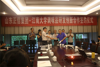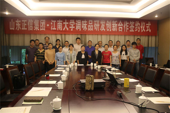 5月15日正信集團副總馬殿國、正信生態農業科技園執行董事榮德瑞、技術總工劉偉、王峰華一行去往江蘇無錫,與江南大學舉行調味品研發創新合作簽約儀式。此次合作意味著正信生態園有了更加強大的理論學術后臺,在今后的產品研發上會更上一層樓。