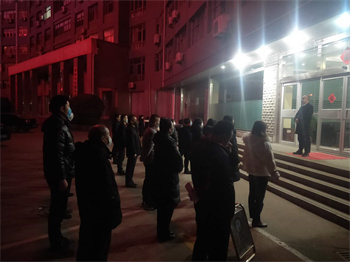 在指令官劉春嶺的一聲號令下,2月17日晚8點,青年公寓員工近50人急步在集團院內集合。