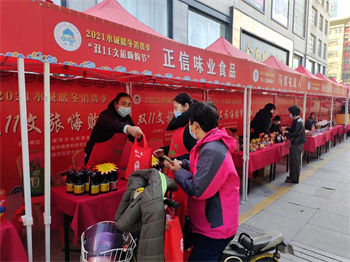 11月11日,聊城市文化和旅游局、聊城市商務局將聯合舉辦的“2021水城暖冬消費季 ‘雙11文旅嗨購節’”活動在金鼎購物中心盛大開啟。 正信味業系列調味品參展“非遺及文旅商品展銷”板塊,憑借有機、健康、綠色的健康理念,受到現場消費者的好評。 ‘雙11文旅嗨購節’活動期間,正信味業“綠業春”調味品推出“買一贈一”鉅惠活動,歡迎廣大消費者前往活動地點選購。