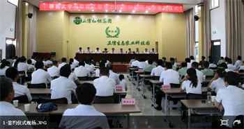 本次活動由聊城經(jīng)濟技術(shù)開發(fā)區(qū)黨工委副書記金同元主持,會議共分五項議程:一是由聊大服 務(wù)社會處處長于會山與生態(tài)園總經(jīng)理王宗鋒簽訂了合作協(xié)議書,二是聊城大學(xué)生命科學(xué)學(xué)院院長曹雪松宣讀聊大正信食品研究所運行章程;三是聊城市民政局副局長 竇淑芬宣布聊城市聊大正信食品研究所成立;四是由聊城大學(xué)副校長孫蘭雨、聊城經(jīng)濟開發(fā)區(qū)黨工委書記、主任楊廣平、聊城大學(xué)服務(wù)社會處處長于會山、聊城市經(jīng) 信委主任劉東昌為研究所成立揭牌;五是由孫蘭雨校長致辭。孫校長在致辭中強調(diào)“憑借聊城正信生態(tài)農(nóng)業(yè)科技園有限公司在資金、市場和企業(yè)管理等方面的雄厚實 力,發(fā)揮好聊城大學(xué)人才的優(yōu)勢,打造“兩個平臺”,實現(xiàn)“四個共享”,贏得區(qū)域社會的認(rèn)可,實現(xiàn)自身價值。”