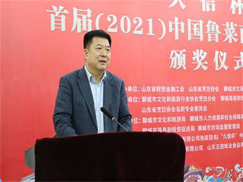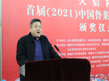 聊城市文化和旅游行業協會常務副會長、秘書長宋文江同志宣讀“久信杯”首屆中國魯菜面食藝術大賽表彰決定