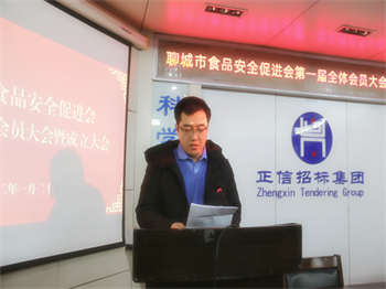 1月21日,聊城市食品安全促進會第一屆全體會員大會暨成立大會在聊城經技術開發區綠業春酒店餐飲公司隆重召開,聊城市市場監督管理局、市行政審批局相關領導,我市食品安全領域專家學者、促進會全體會員代表近50人出席大會。