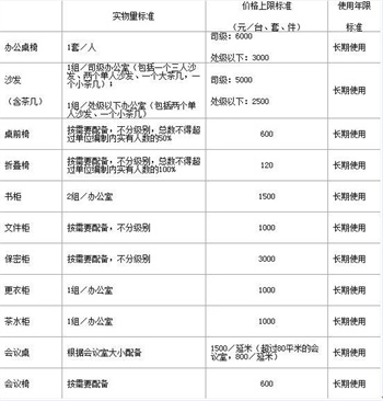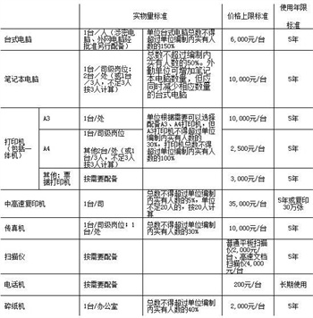 2.本表中所列通用辦公設備不含特殊需要的專業類設備。